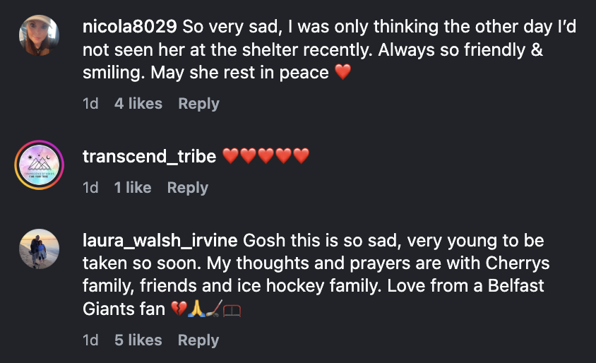 Our thoughts and condolences go out to the Manchester Storm family, as well as all those who knew and loved Cherry. RIP.